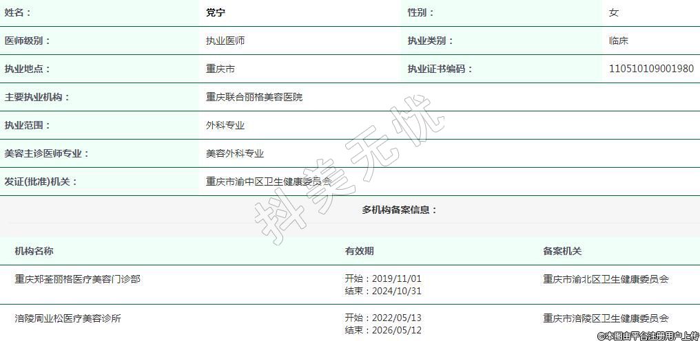 主要執(zhí)業(yè)機(jī)構(gòu):重慶聯(lián)合麗格美容醫(yī)院