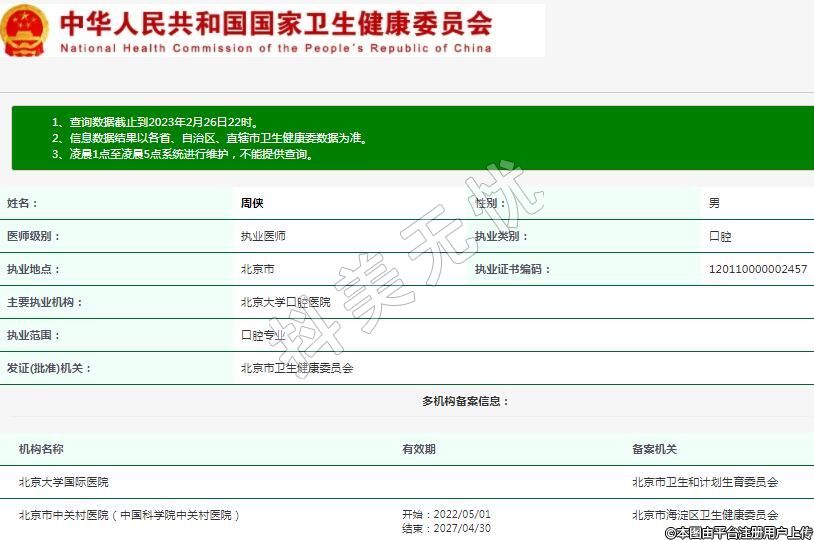 主要執(zhí)業(yè)機(jī)構(gòu):北京大學(xué)口腔醫(yī)院