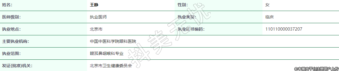 執(zhí)業(yè)范圍:眼耳鼻咽喉科專業(yè)