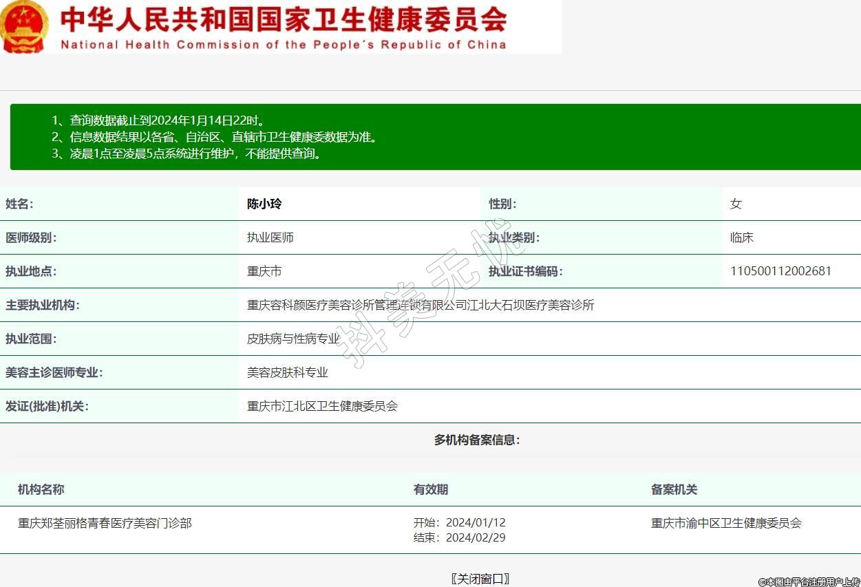 主要執(zhí)業(yè)機(jī)構(gòu):重慶容科顏醫(yī)療美容診所管理連鎖有限公司江北大石壩醫(yī)療美容診所