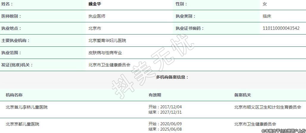 北京愛(ài)育華婦兒醫(yī)院醫(yī)療美容執(zhí)業(yè)醫(yī)生