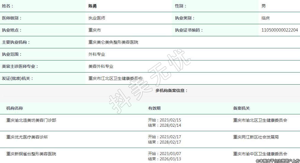 重慶渝北造美坊美容執(zhí)業(yè)醫(yī)師