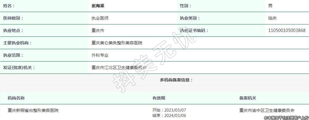 主要執(zhí)業(yè)機構(gòu):重慶美侖美奐整形美容醫(yī)院