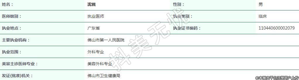 佛山市第一人民醫(yī)院整形美容執(zhí)業(yè)醫(yī)生