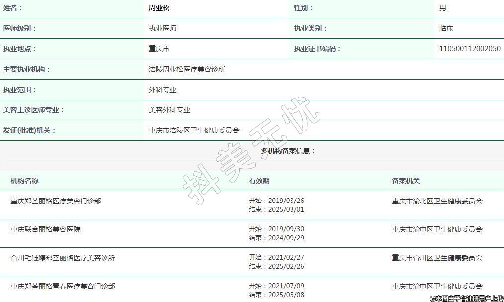 涪陵周業(yè)松醫(yī)療美容執(zhí)業(yè)醫(yī)師