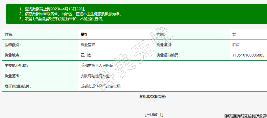 執(zhí)業(yè)范圍:皮膚病與性病專業(yè)
