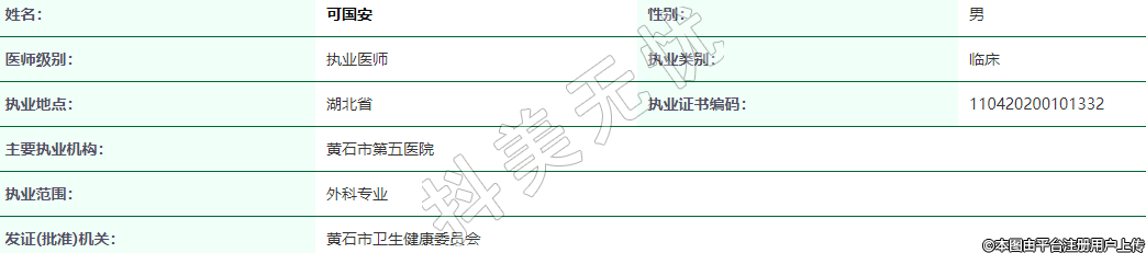 執(zhí)業(yè)地點:湖北省