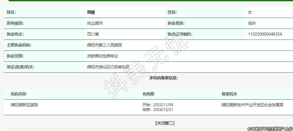 執(zhí)業(yè)范圍:皮膚病與性病專業(yè)