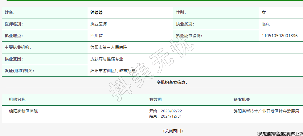 執(zhí)業(yè)范圍:皮膚病與性病專(zhuān)業(yè)