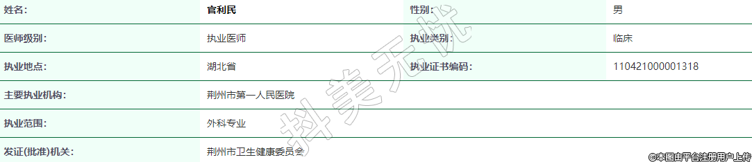 主要執(zhí)業(yè)機(jī)構(gòu):荊州市第一人民醫(yī)院