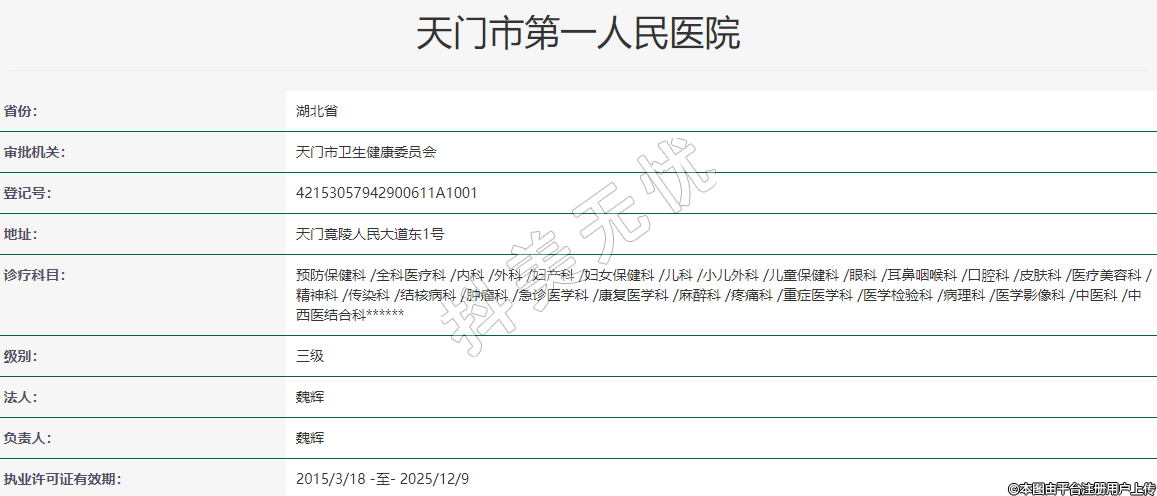 發(fā)證(批準(zhǔn))機(jī)關(guān):天門市衛(wèi)生健康委員會(huì)