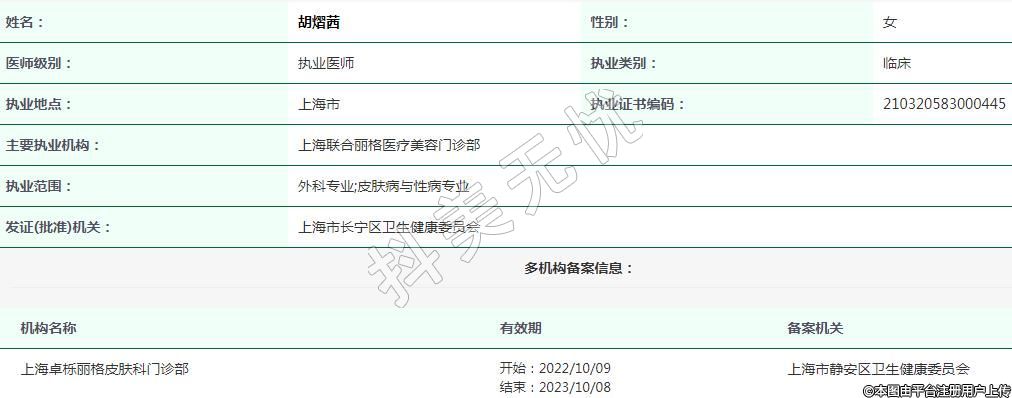 主要執(zhí)業(yè)機(jī)構(gòu):上海聯(lián)合麗格醫(yī)療美容門診部