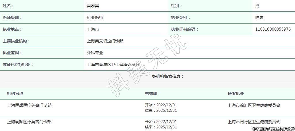 上海醫(yī)顏醫(yī)療美容執(zhí)業(yè)醫(yī)師