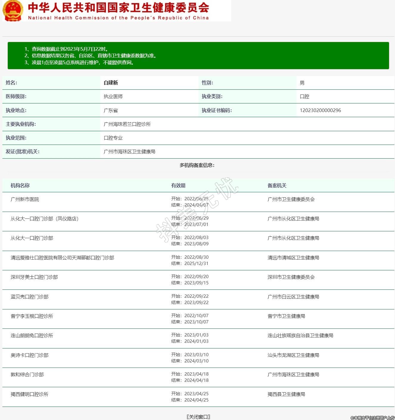 主要執(zhí)業(yè)機(jī)構(gòu):廣州海珠若蘭口腔診所