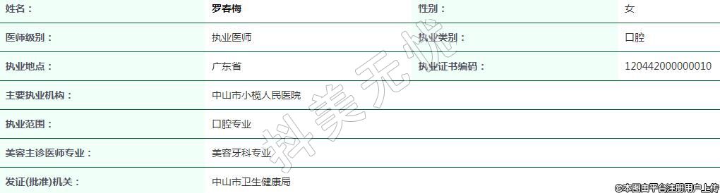 中山小欖人民醫(yī)院整形美容執(zhí)業(yè)醫(yī)生
