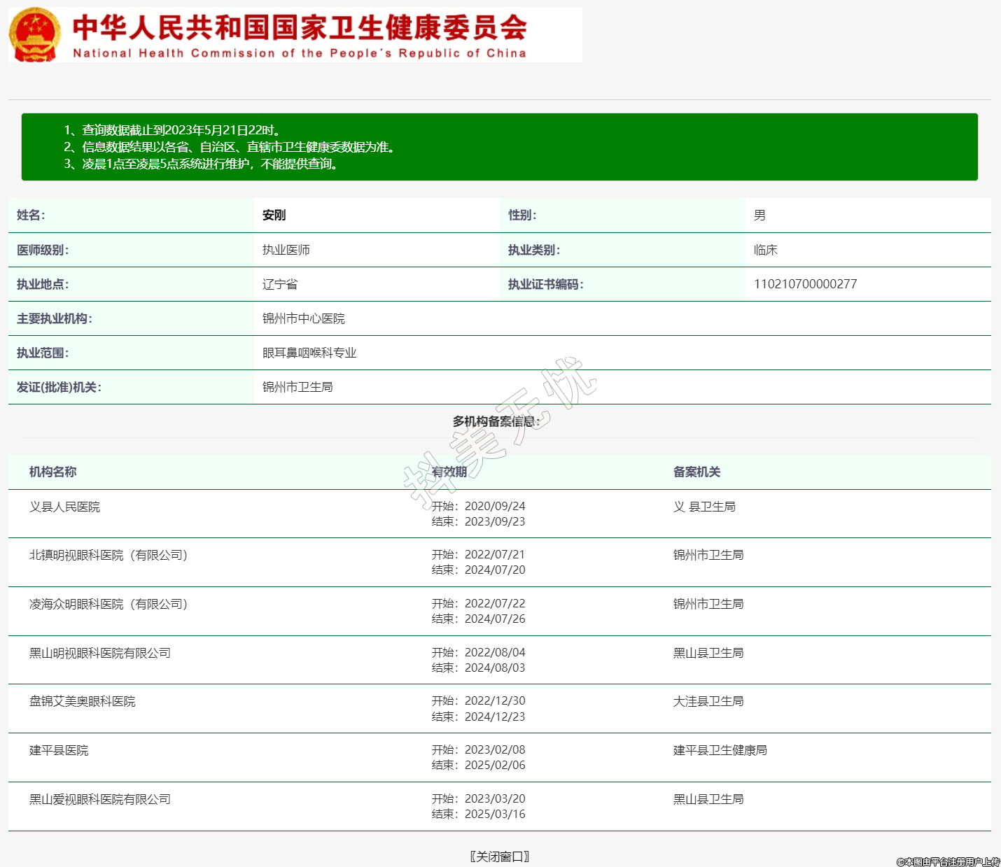發(fā)證(批準(zhǔn))機(jī)關(guān):錦州市衛(wèi)生局