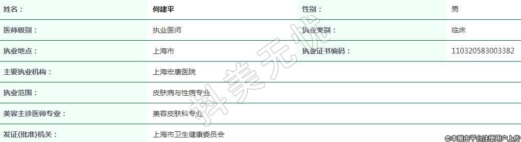 上海宏康醫(yī)院醫(yī)療美容執(zhí)業(yè)醫(yī)師