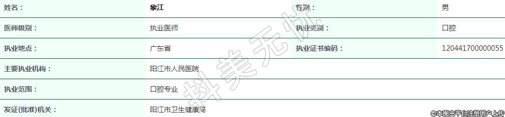 執(zhí)業(yè)范圍:口腔專(zhuān)業(yè)
