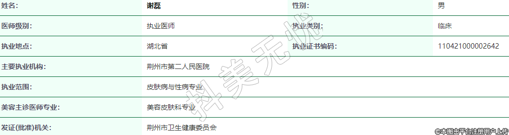 執(zhí)業(yè)范圍:皮膚病與性病專業(yè)