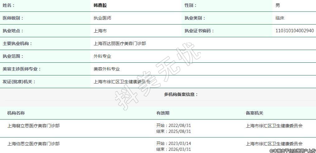 上海百達(dá)麗醫(yī)療美容執(zhí)業(yè)醫(yī)師