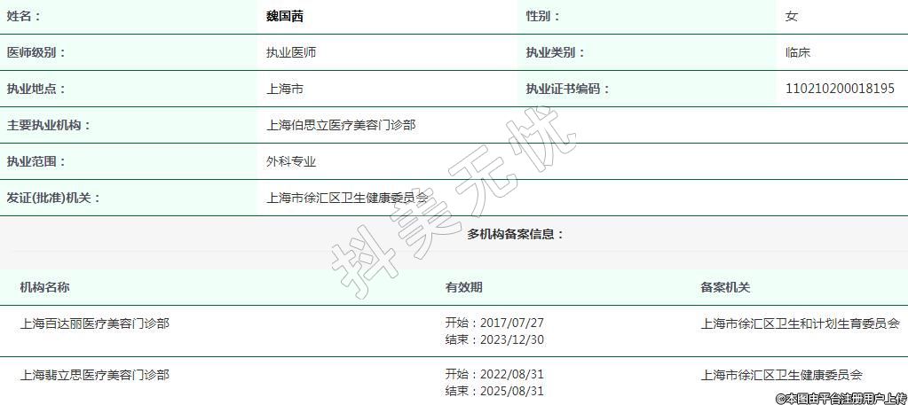 上海百達麗醫(yī)療美容執(zhí)業(yè)醫(yī)師