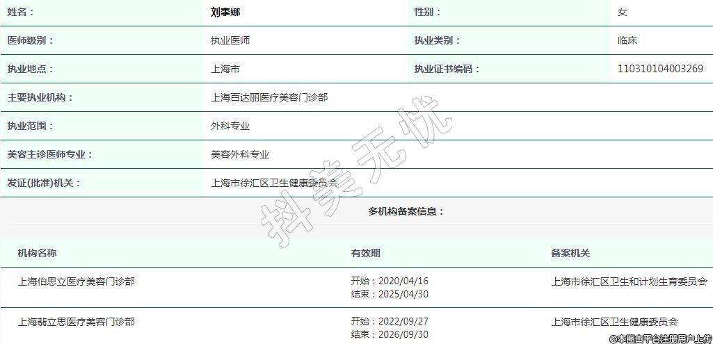主要執(zhí)業(yè)機構(gòu):上海百達麗醫(yī)療美容門診部