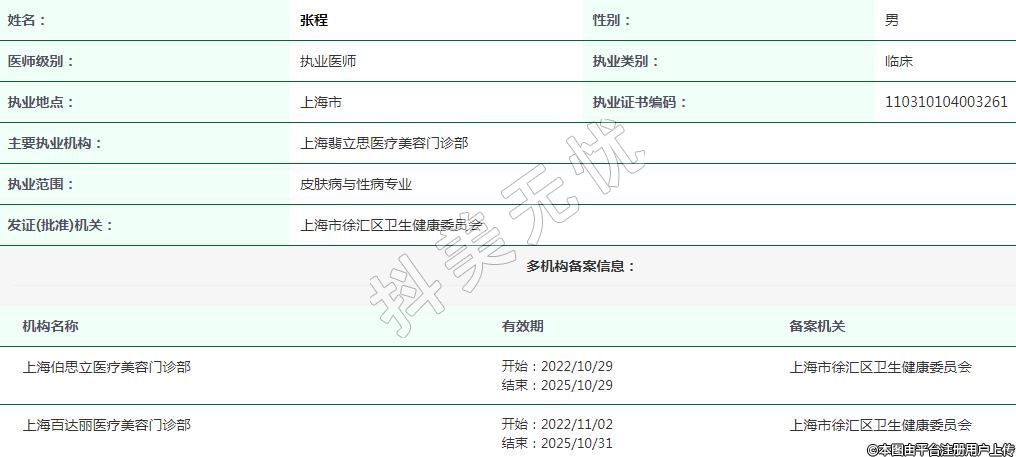 上海百達(dá)麗醫(yī)療美容執(zhí)業(yè)醫(yī)師