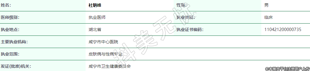 執(zhí)業(yè)范圍:皮膚病與性病專業(yè)