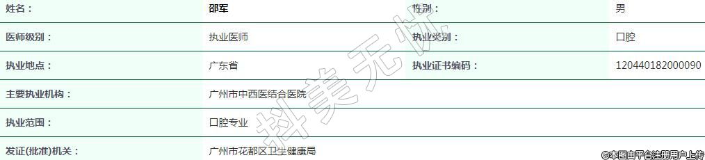 執(zhí)業(yè)范圍:口腔專業(yè)