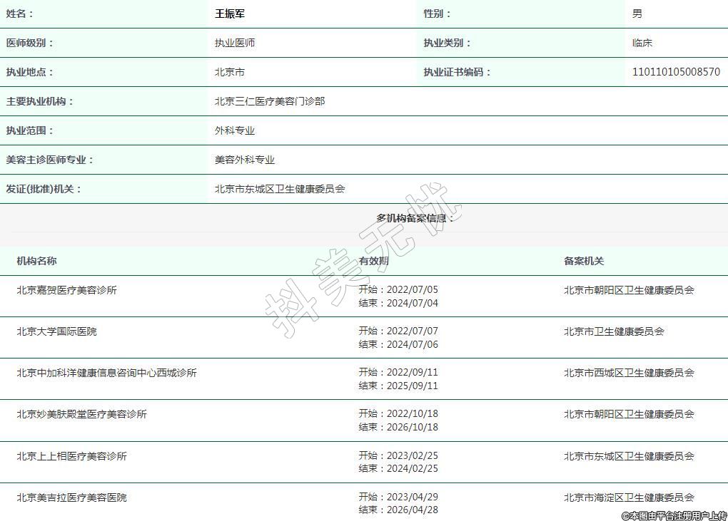 主要執(zhí)業(yè)機構(gòu):北京三仁醫(yī)療美容門診部
