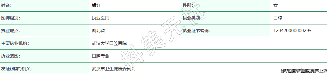 主要執(zhí)業(yè)機(jī)構(gòu):武漢大學(xué)口腔醫(yī)院