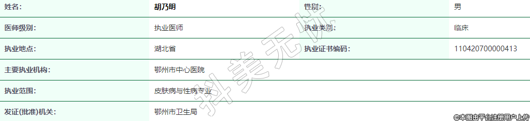 執(zhí)業(yè)范圍:皮膚病與性病專業(yè)