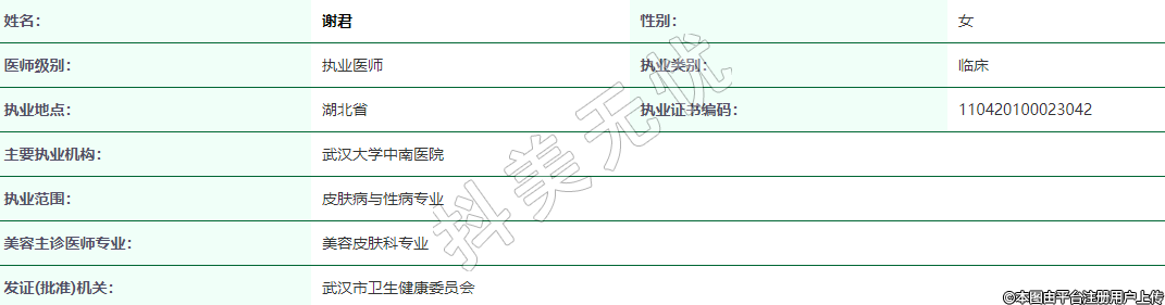執(zhí)業(yè)范圍:皮膚病與性病專業(yè)