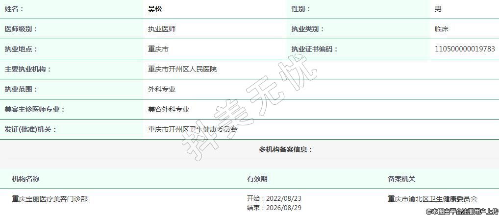 重慶市開州區(qū)人民醫(yī)院醫(yī)療美容執(zhí)業(yè)醫(yī)師