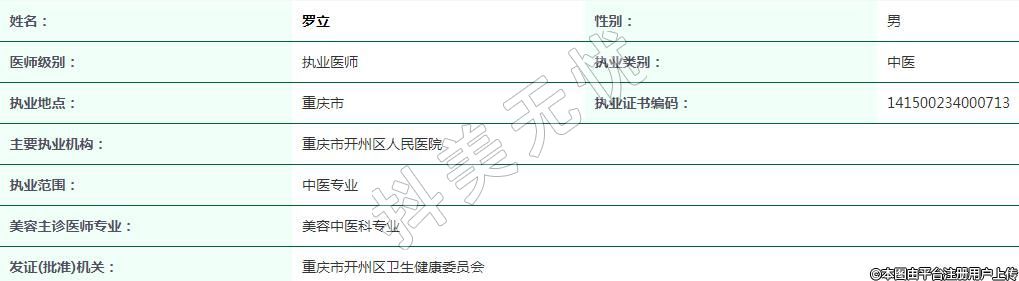 重慶市開州區(qū)人民醫(yī)院醫(yī)療美容執(zhí)業(yè)醫(yī)師