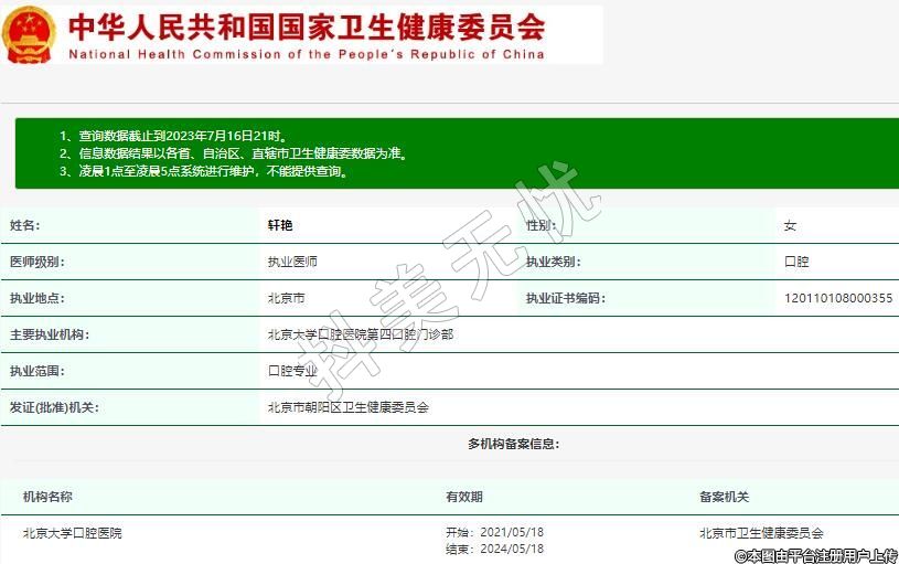 主要執(zhí)業(yè)機構:北京大學口腔醫(yī)院第四口腔門診部