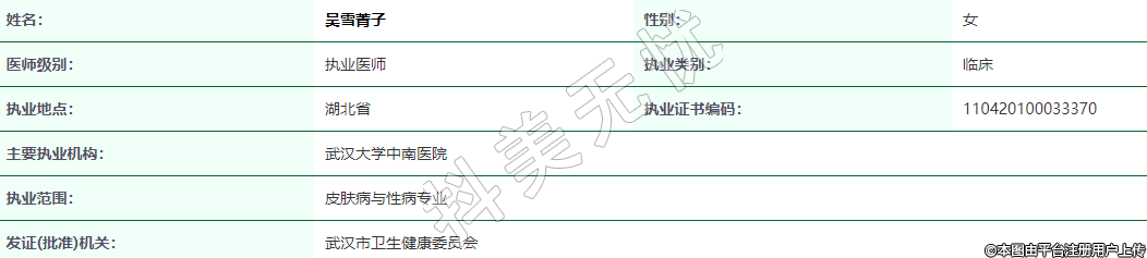 執(zhí)業(yè)范圍:皮膚病與性病專業(yè)