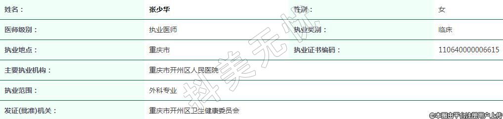 重慶市開州區(qū)人民醫(yī)院醫(yī)療美容執(zhí)業(yè)醫(yī)師