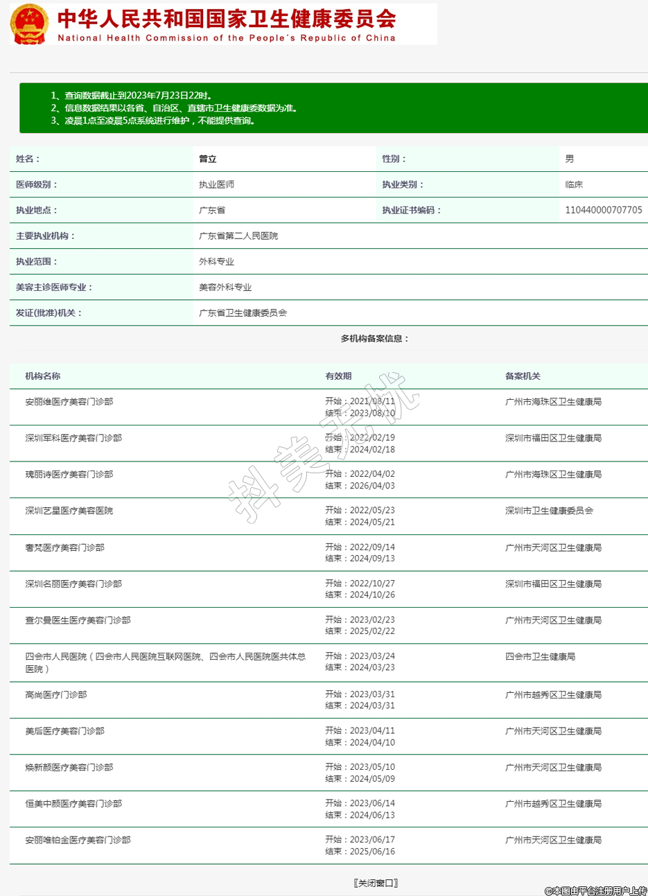 廣東省第二人民醫(yī)院醫(yī)療美容執(zhí)業(yè)醫(yī)生