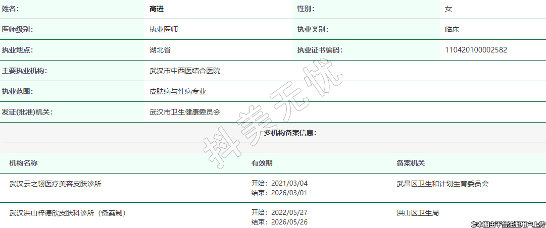 機構名稱:武漢洪山梓德欣皮膚科診所(備案制)