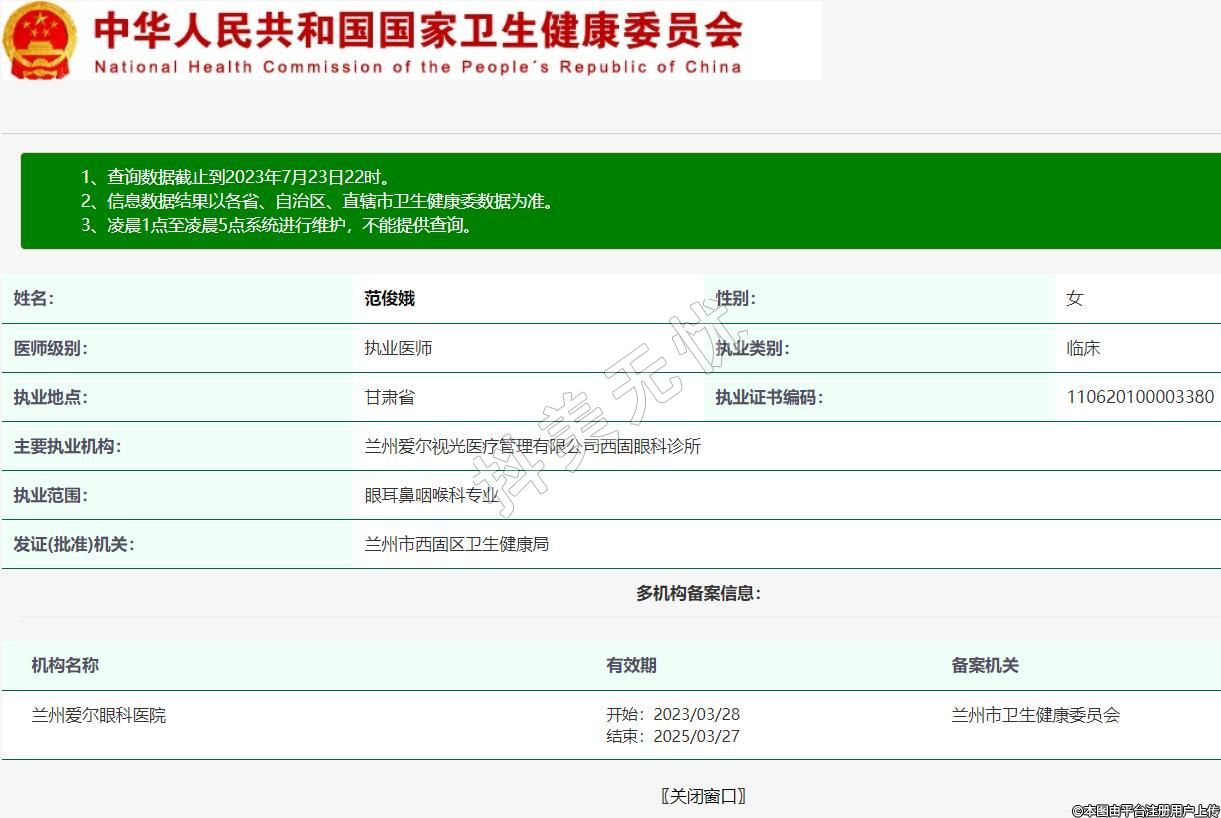 主要執(zhí)業(yè)機(jī)構(gòu):蘭州愛爾視光醫(yī)療管理有限公司西固眼科診所