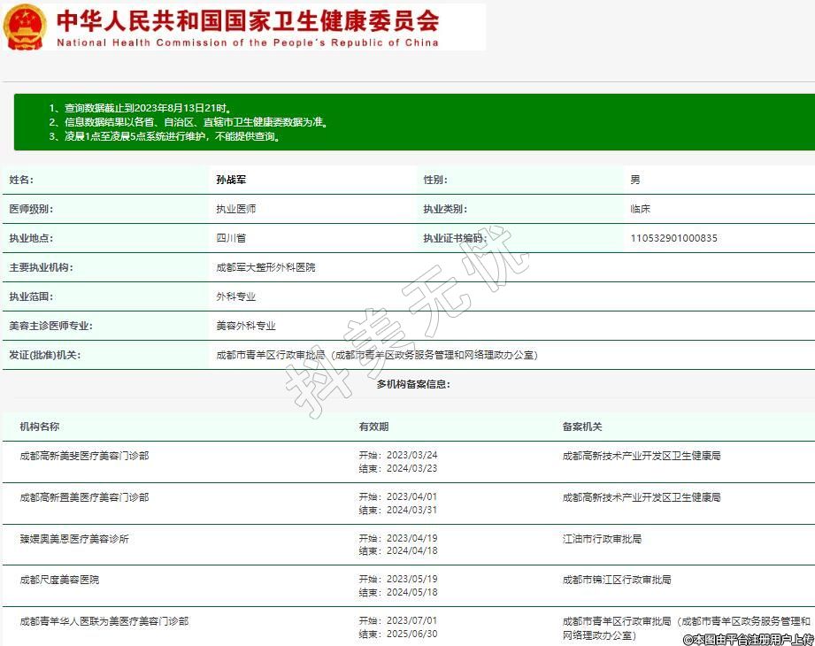 主要執(zhí)業(yè)機構(gòu):成都軍大整形外科醫(yī)院