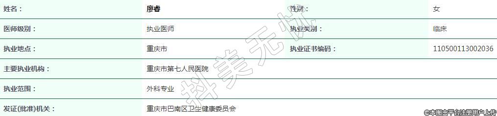 主要執(zhí)業(yè)機(jī)構(gòu):重慶市第七人民醫(yī)院