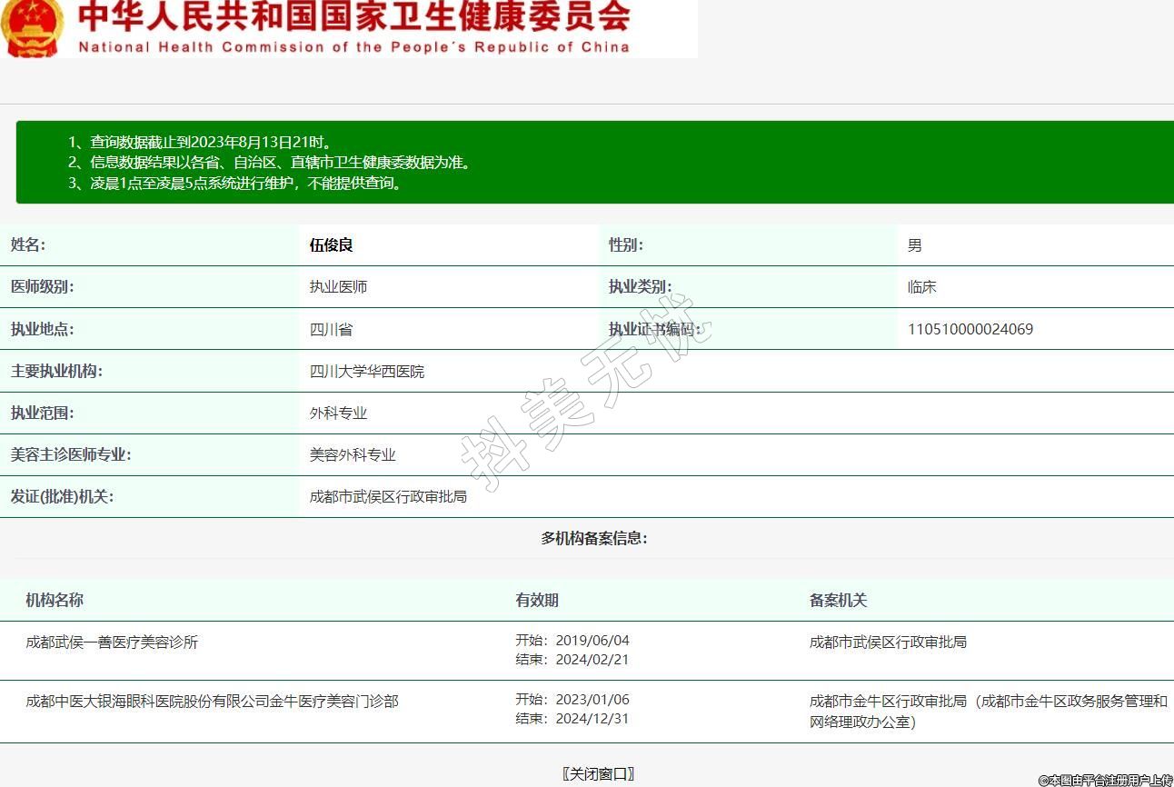 機(jī)構(gòu)名稱:成都中醫(yī)大銀海眼科醫(yī)院股份有限公司金牛醫(yī)療美容門診部