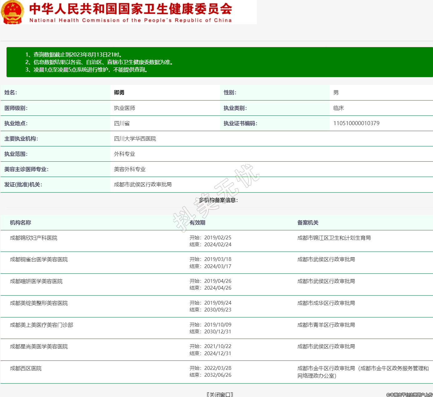 主要執(zhí)業(yè)機構(gòu):四川大學(xué)華西醫(yī)院