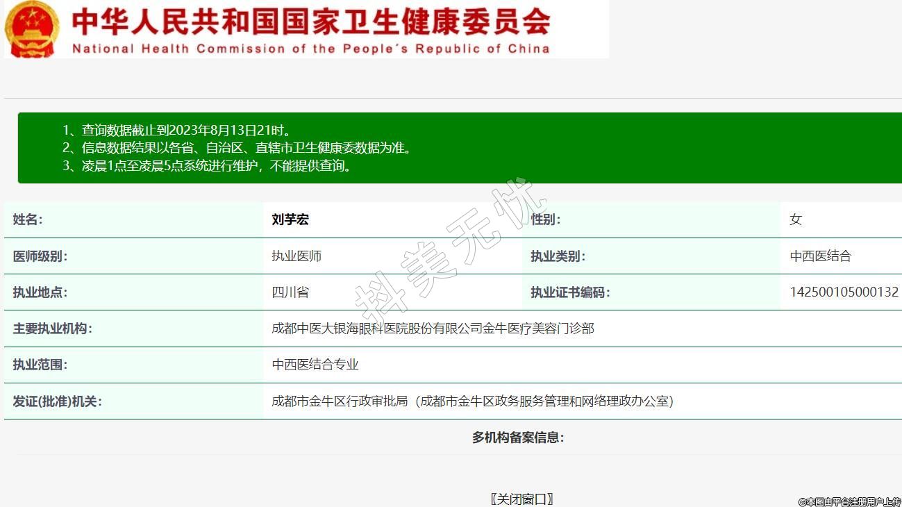 主要執(zhí)業(yè)機構(gòu):成都中醫(yī)大銀海眼科醫(yī)院股份有限公司金牛醫(yī)療美容門診部
