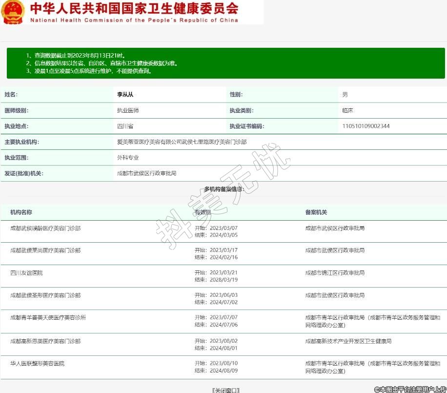 主要執(zhí)業(yè)機(jī)構(gòu):愛(ài)美蒂亞醫(yī)療美容有限公司武侯七里路醫(yī)療美容門(mén)診部