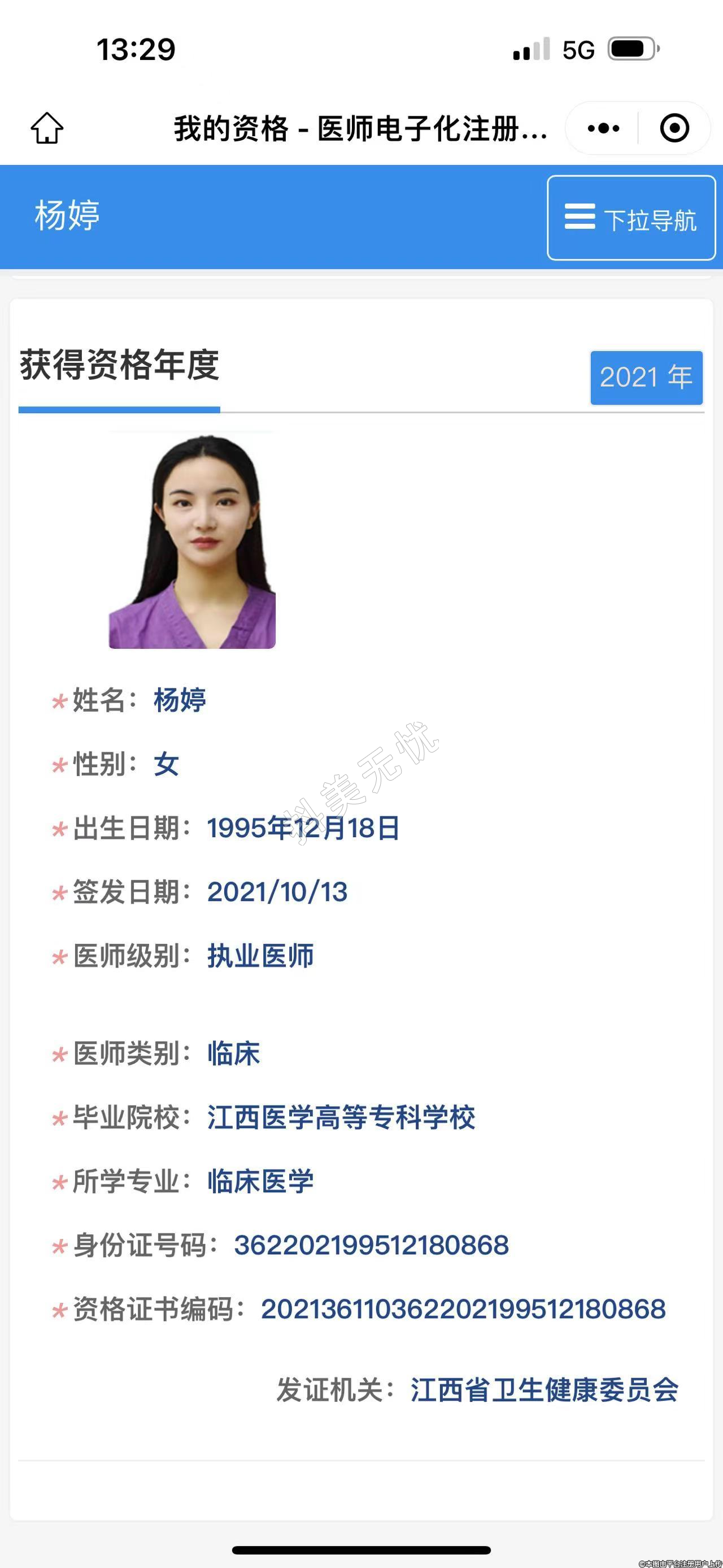 *資格證書(shū)編碼: 202136110362202199512180868