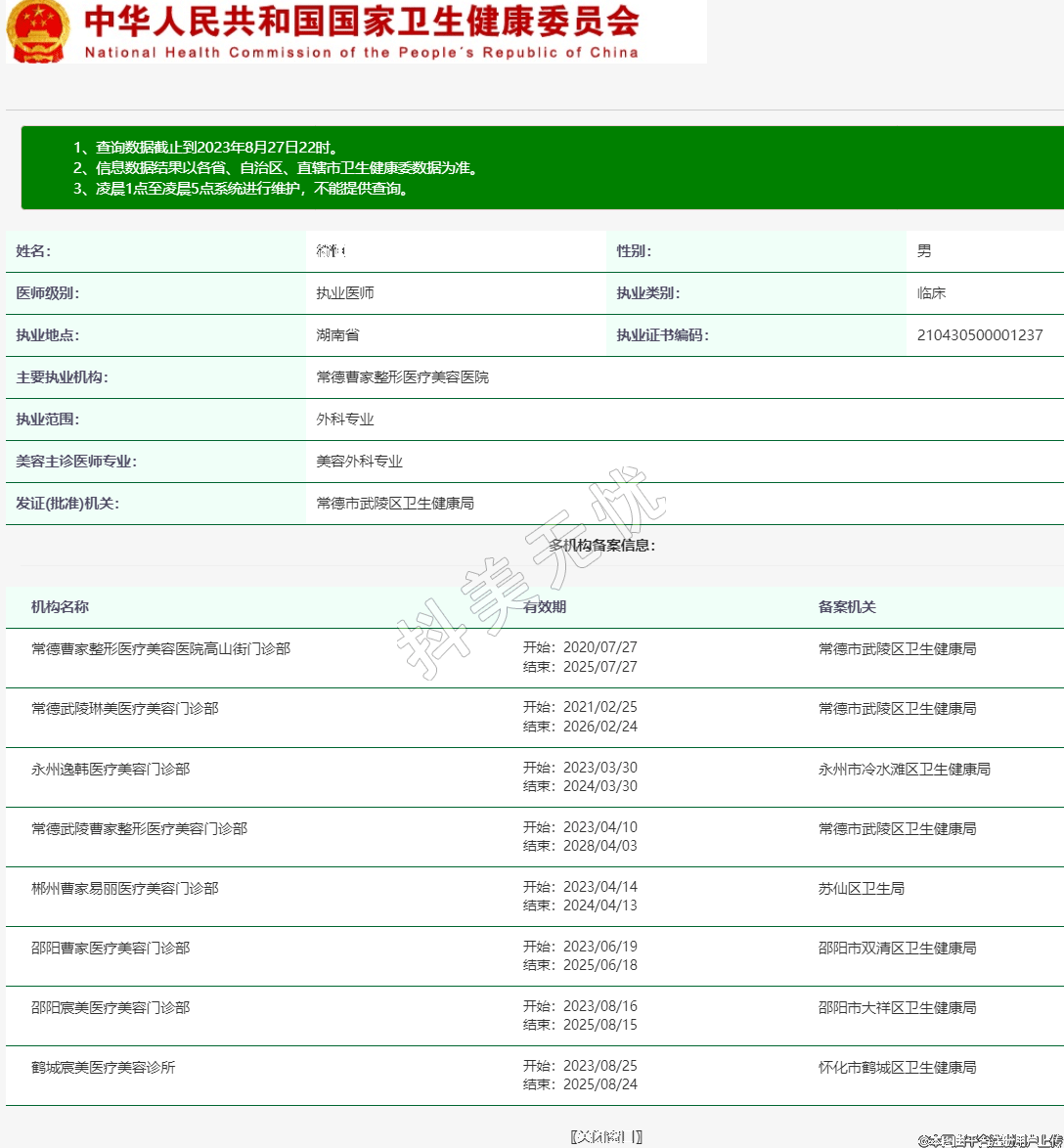 主要執(zhí)業(yè)機(jī)構(gòu):常德曹家整形醫(yī)療美容醫(yī)院