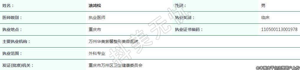 主要執(zhí)業(yè)機構(gòu):萬州華美紫馨整形美容醫(yī)院